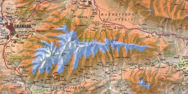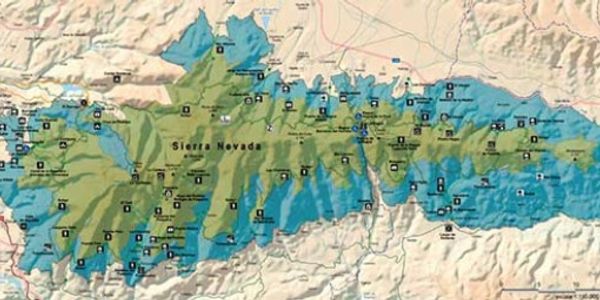 El Espacio Natural Sierra Nevada, integrado por el parque nacional y natural del mismo nombre, impresiona por ser un extenso macizo montañoso con un relieve compacto y por tener la cima más alta de la Península Ibérica, el Mulhacén con 3.479 metros.